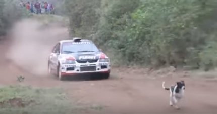 看起來狗狗就要被車子輾過,但沒想到這隻狗狗「就是全世界最幸運的生物」。
