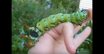 這種比你的手還大的惡魔角毛毛蟲根本就是視覺地獄!看到成長成蛾的模樣更是驚人!