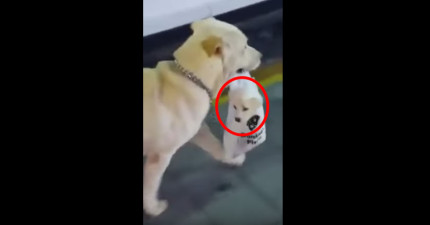「狗媽媽用塑膠袋拎著狗寶寶走來走去」的影片可愛到可能會讓你的小心臟受不了瞬間炸掉。