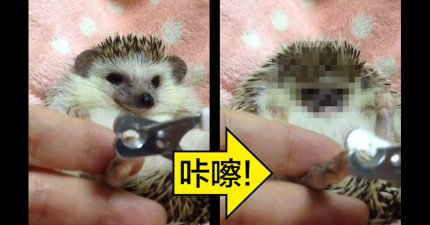 這隻刺蝟「剪指甲時在0:17露出的表情」,會讓你就算被刺痛都想要去抱抱他!