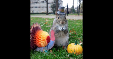 這名學生跟校園的小松鼠變成了好友後,每次一到節日時就會幫他們打扮。