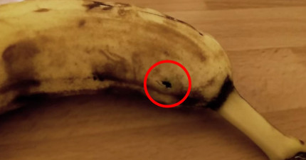 這名男子才要吃香蕉但發現表皮在膨脹起伏,洞口越來越大最後猛然竄出一隻…*尖叫*
