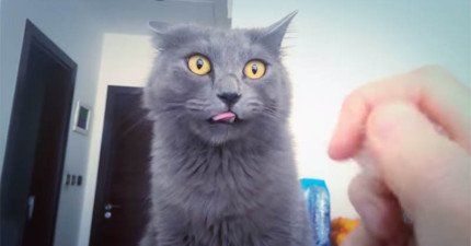 請你告訴我,這隻貓在聽到揉塑膠的超怪反應到底是什麼意思?!