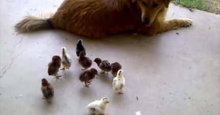 這隻狗媽媽一早發現一群落單的小雞,過了一分鐘後她們的互動讓人難以置信!