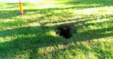 一名男子發現了這個草地上的大洞…你怎麼會躲在這裡面啊老兄!?