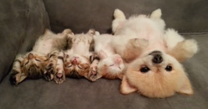 這隻以為自己是貓咪的可愛博美狗…明明睡不著還學其他貓咪四腳朝天!