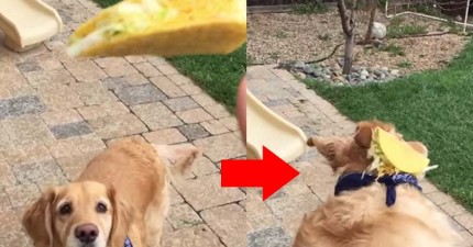 這隻黃金獵犬學是全世界最不會接食物的狗兒,他努力接的慢動作影片會讓你笑到爬不起來!