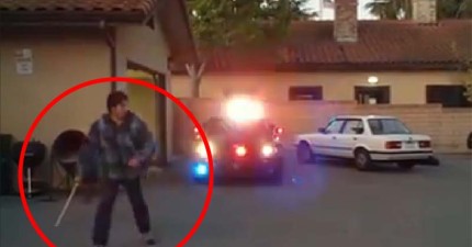 這位犯人以為他可以逃之夭夭了,但看看是誰從警車後座衝了出來!
