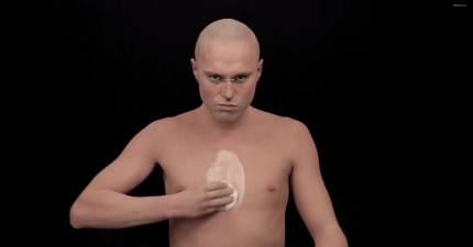 這個白皙酷哥對著鏡頭坐下來,然後拿起卸妝海綿往身上擦。00:50那一刻…我整個傻眼了!
