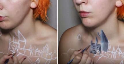 她开始在身上画《哈利波特》霍格华兹魔法学院,完成后直接变成动画! (9张加影片)