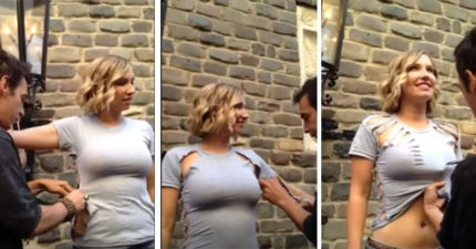 這名王牌設計師開始剪美女身上的普通T恤,當完成後我覺得200塊已經變成1萬塊了!