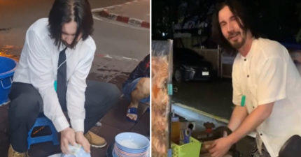 驚見「59歲國際巨星」蹲坐路邊洗碗!民眾求合照…近看恍然大悟