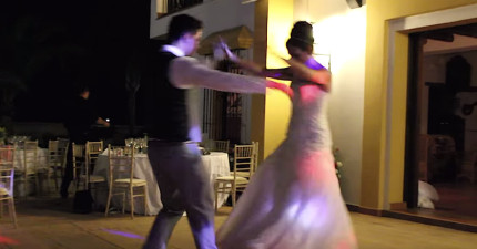 這對夫妻在婚禮原本正輕柔地跳著舞…但下一秒忽然推開對方讓現場全都尖叫!
