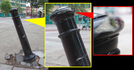 如果你近看這根「被車撞歪的路桿」,會發現讓你瞬間笑噴的震撼景象!