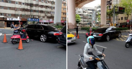 傻大哥迴轉道上「對衝黑色轎車」,拿下安全帽當場噴淚「大大一個B印在眼前」網嘆:又一個要賣腎了…
