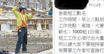 高雄老闆徵粗工開「日薪1千」還強調「請不要抱來玩的心態」!網傻眼:在玩人?
