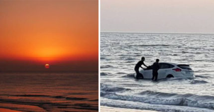 2位男大生開車欣賞黃金夕陽美景,看到一半「腳下海底汪洋一片」GG了!