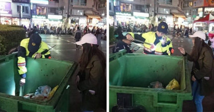 人民保母服務無下限?女子逛街「200塊不小心丟垃圾桶」尖叫急壞,帥警不顧髒臭「神打撈」網嘆:很可悲