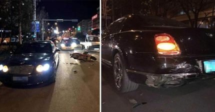 酒驾男骑电动车追撞1800万宾利「撞出一凹洞」,瞎霸气掏出4000块:撞坏多少我赔!