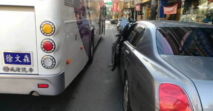 千萬賓利車亂停+亂開門…公車狠狠刷過GG了!刮完畫面網爽喊「超紓壓」!(影片)