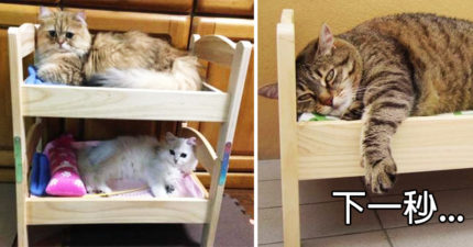 IKEA超搶手「小床」很適合孝敬貓老大,但不是每隻貓都適用!他太肥出現「羞恥畫面」不得不裝死…