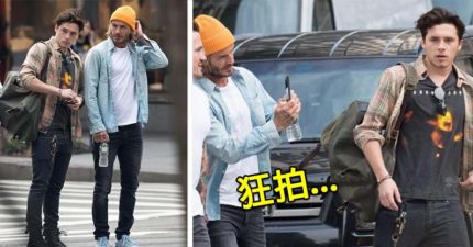 老爸你讓我好糗!赴紐約陪長子上學「貝克漢像痴漢瘋狂跟拍」,布魯克林「超尷尬表情」讓全網笑翻!