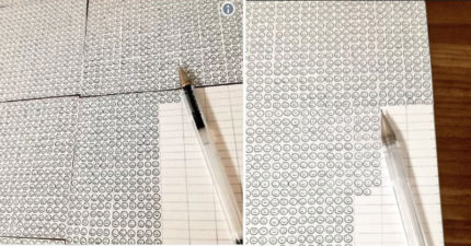 她花6天時間用原子筆「畫出3萬個笑臉」想測原子筆可用多久!成品排在一起不可思議!