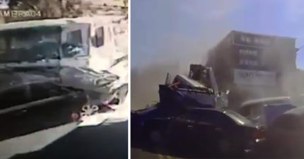 從3個角度看!陽明山超級連環大車禍,水泥車無剎車「全速狠衝破」20多輛汽機車撞爛!(影片)