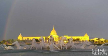 奇美博物館「純金打造」!巧遇彩虹「超美夕陽金景」不輸埃及金字塔!
