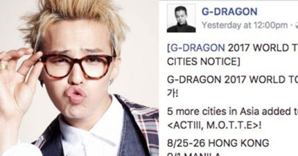 GD宣布巡迴演唱多加5場,10月確定會飛「來台灣」連唱兩天!