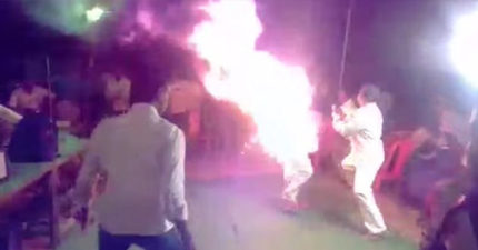 印度男子阻止不了老婆「上台唱歌」,一氣之下帶著煤油走向舞台…