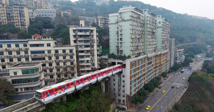 中国首座轻轨「穿越19层高大楼」直接开进家里超神奇!外国网友酸:「为住户感到可怜」惨被打脸!(影片)