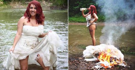新娘走進沼澤把婚紗弄髒還「燒毀」拍下最屌婚紗照,「10年愛情的葬禮」新男友超愛! (12張圖)