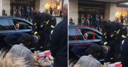 婦人過馬路跌倒起不來,男神貝克漢超暖心「用車保護」網友讚爆!