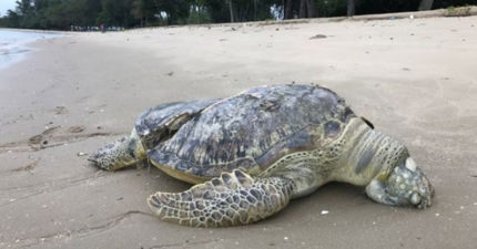 他在海灘看見巨大罕見海龜忍不住過去看,眼前「化成兩半」慘況卻讓他徹底心碎…