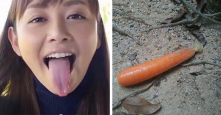 他在地上發現「限制級紅蘿蔔」好害羞,網友笑說:「姐夫太累了,躺在地上!」