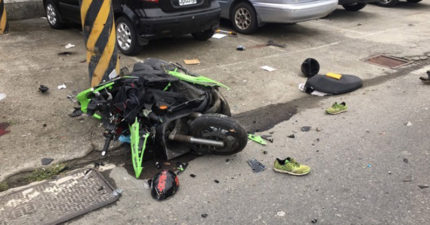 國中生無照雙載失速「撞電線桿兩人慘死」,監視器畫面還原現場真相。(非趣味)