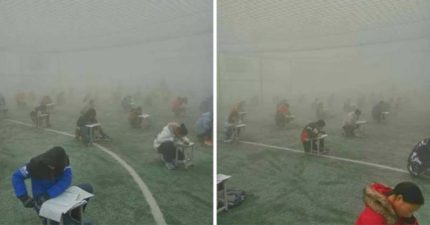 400名國中生被迫在霧霾操場上「露天考試」校長被罰,網友:「連考卷都看不清楚…」