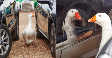 大白鵝失去同伴傷心欲絕,看到車子倒影「以為老朋友回來了」死都不肯離開。