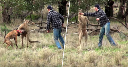 原來這就是為什麼袋鼠要給狗狗鎖喉,專家說:「狗主人命大!」