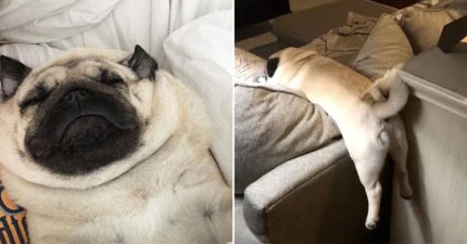 史上最Chill「懶散胖巴哥」鬆到爆紅 整隻「掛把手」還能睡成平面!