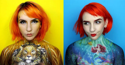 正妹彩妝師在胸前塗抹色彩 證明人體才是最美畫布