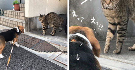 溜狗散步竟遇上「有4隻眼的喵星人」 她:而且還有眉毛!