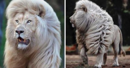攝影師「玩命拍攝」罕見絕美白獅 翻開作品才發現:根本是大傻貓!