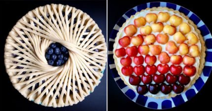 她把派當畫布+水果當顏料手作「超美繽紛藝術派」!漸層水蜜桃美到捨不得吃!(27張)