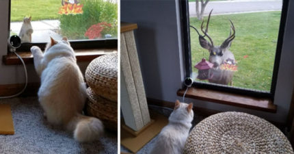 他嚴重懷疑家裡貓的「真實身分是迪士尼公主」,只要在窗邊就會有動物來打招呼!
