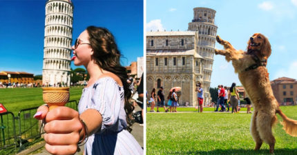 30张会让人想回去重新拍的「超创意比萨斜塔」照!#9 学起来恶整其他游客!