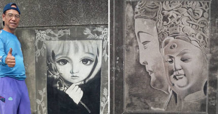 鋼刷畫家「鳳山唐伯虎」工廠外牆畫佛像引朝聖,「未知會老闆」遭報警要求清除!網友兩派論戰