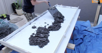 他把2大袋水泥混合好後就倒入這個模組裡時我還很納悶,他結束後我就看到了最美麗的「高貴桌子」!