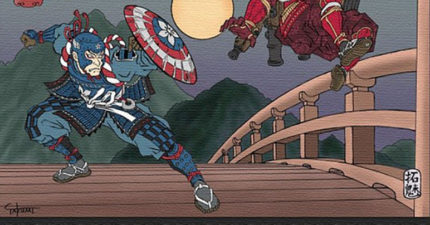 這名畫家用老日式畫風畫出超帥的「美國隊長大戰鋼鐵人」!鋼鐵人的臉真的太帥了!